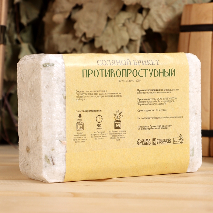 Соляной брикет "Противопростудный" эвкалипт, лимон, имбирь 1,35 кг "Добропаровъ"