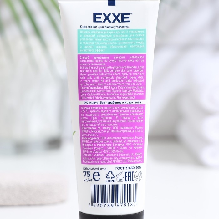 Крем для снятия усталости ног Exxe с лавандой, 75 мл