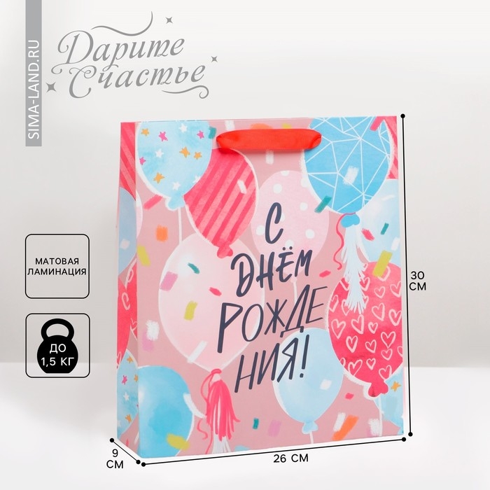 Пакет подарочный ламинированный вертикальный, упаковка, «Счастье», M 25.5 х 30 х 9 см