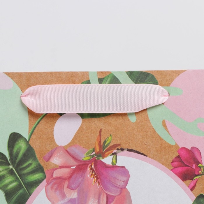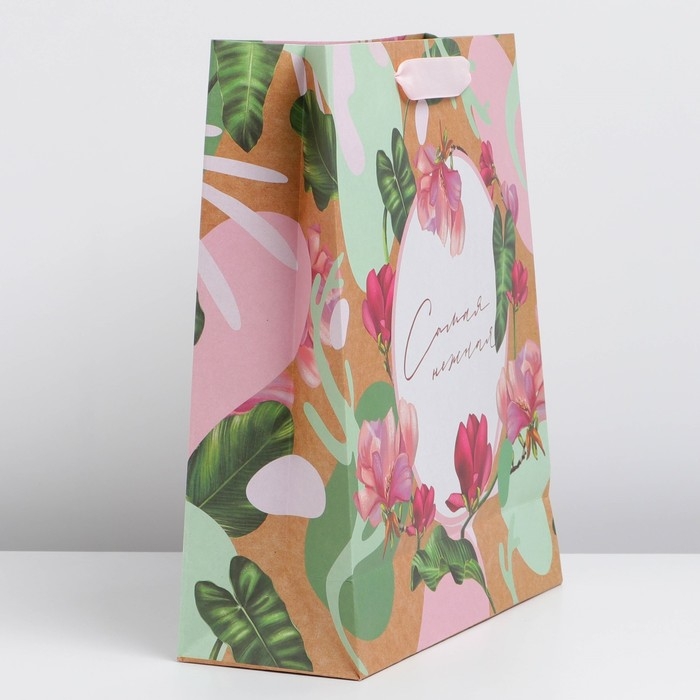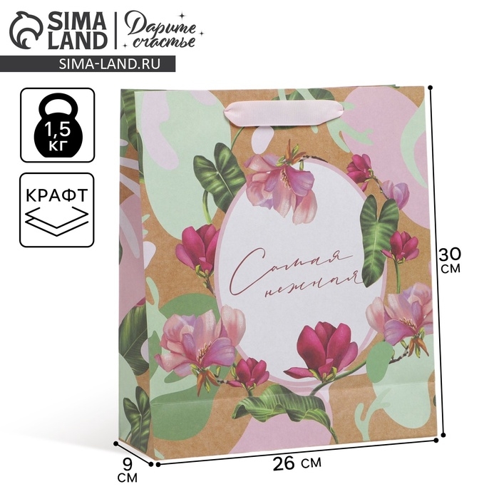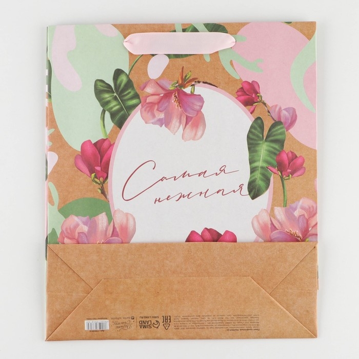 Пакет подарочный крафтовый вертикальный, упаковка, «Нежность», M 26 х 30 х 9 см