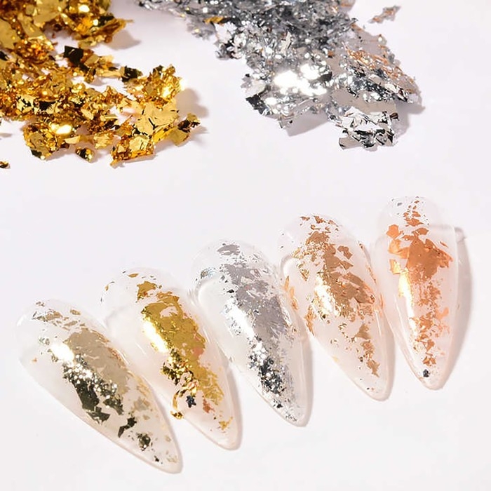Жатая фольга используется в работе с гель-лаками. Материал поможет в создании френча, нюда или смелого и яркого маникюра для эффектного образа. Вы можете нанести фольгу на всю ногтевую пластину или точечно, дайте волю своему воображению.