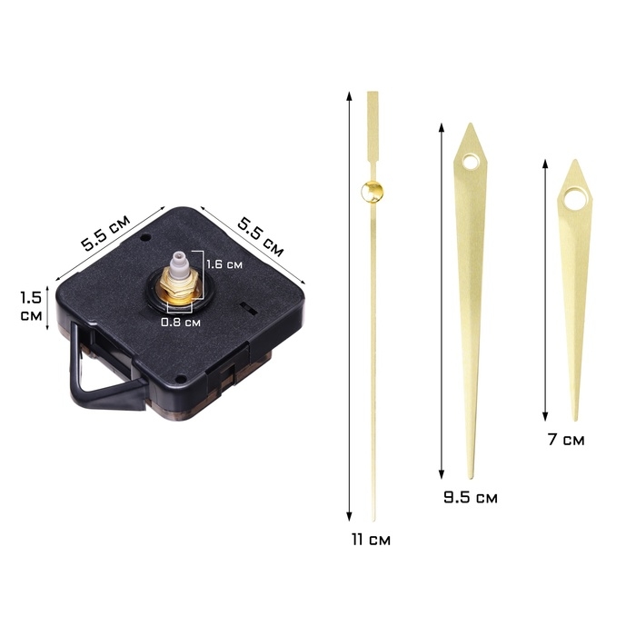 Часовой механизм со стрелками "Соломон-5", плавный ход, шток 16 мм, стрелки 70/95/115 мм