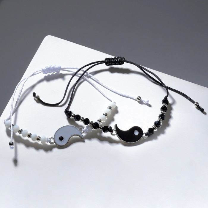 Браслеты «Неразлучники» инь-ян, блеск, цвет чёрно-белый, 7см