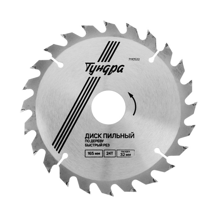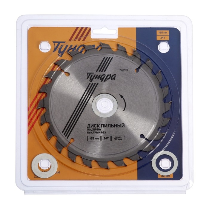 Диск пильный по дереву ТУНДРА, быстрый рез, 165 х 32 мм (кольца на 22,20,16), 24 зуба