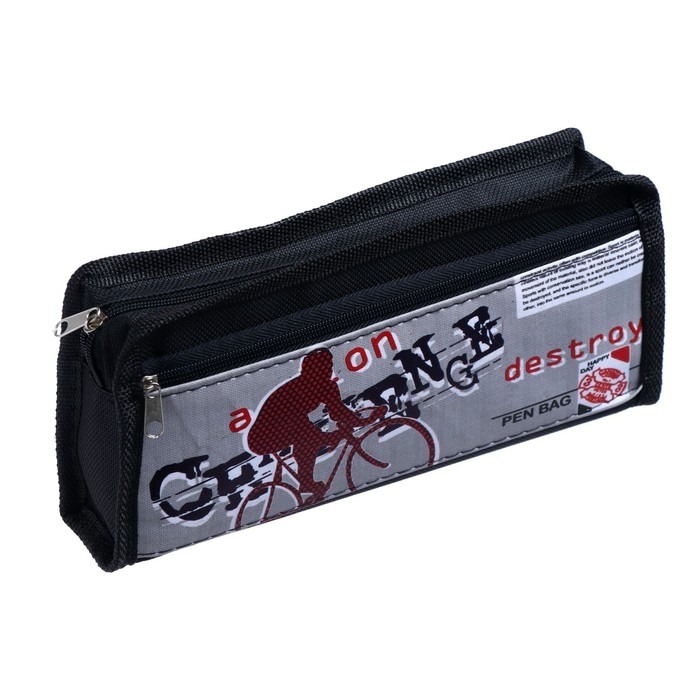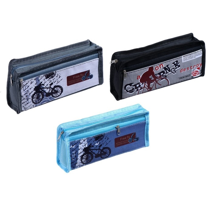 Пенал школьный на молнии 2 отделения "Велосипед", МИКС