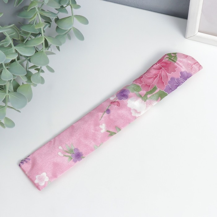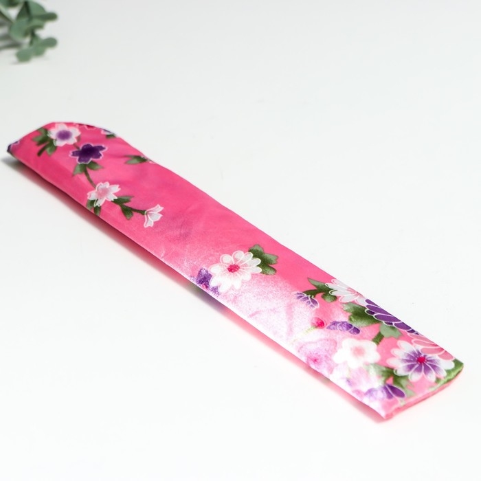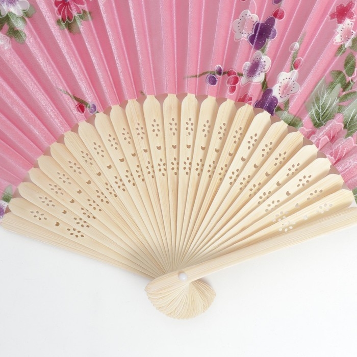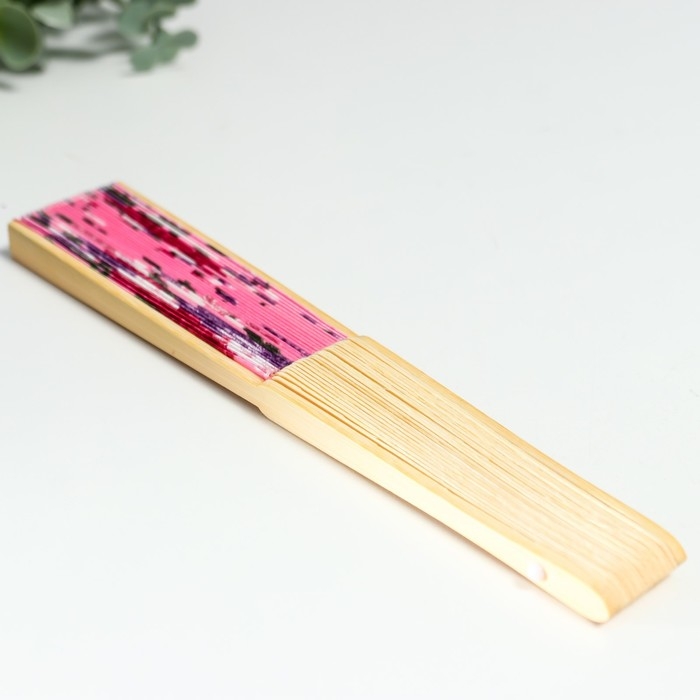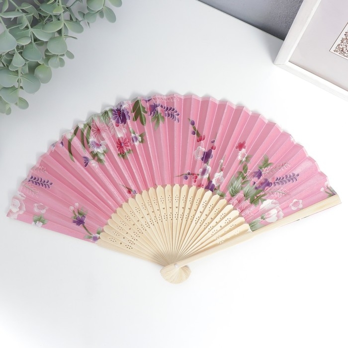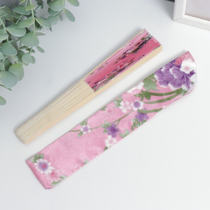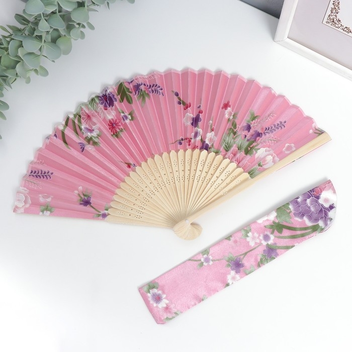 Веер бамбук, текстиль h=21 см "Цветы" с чехлом, розовый