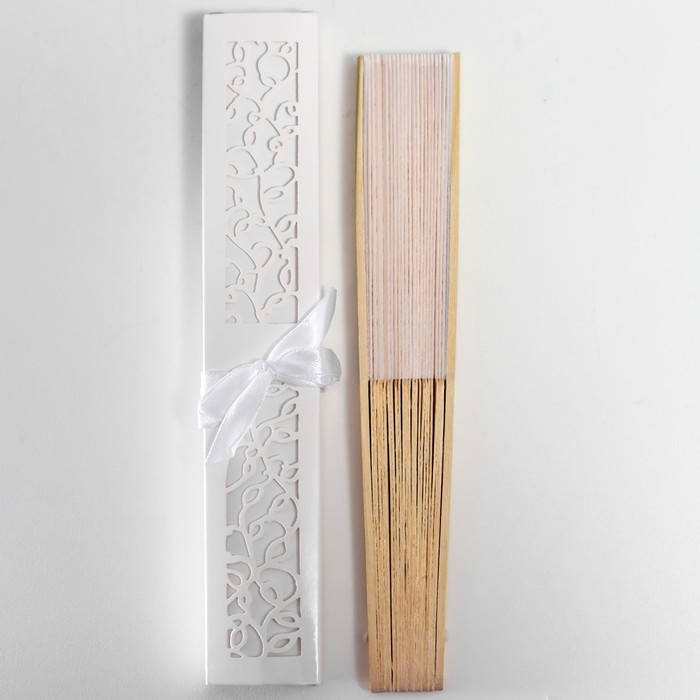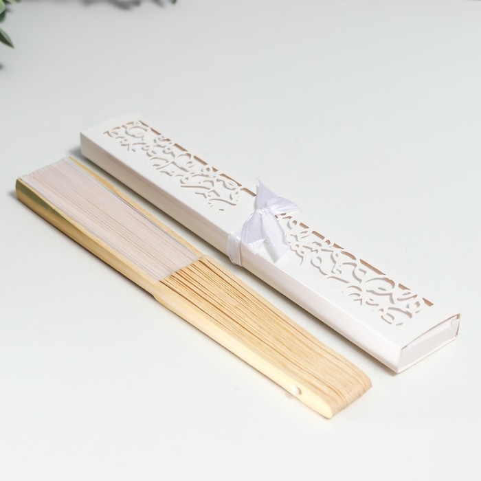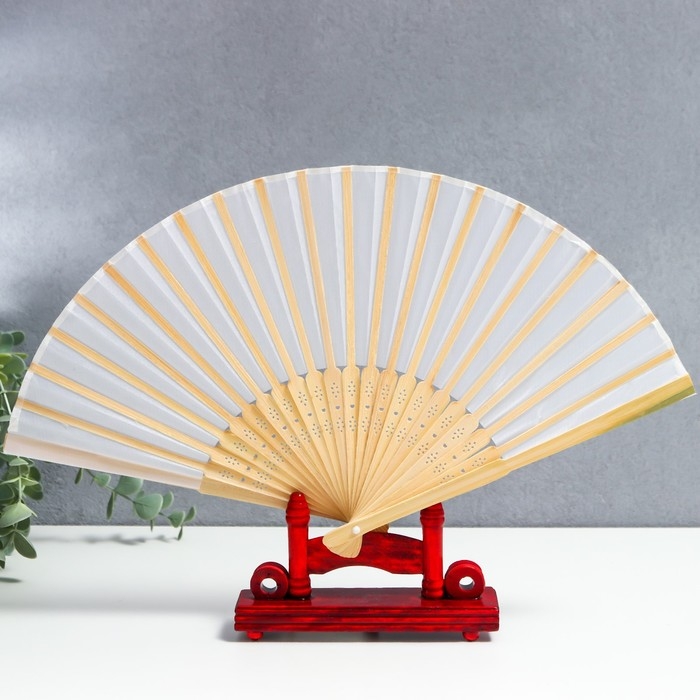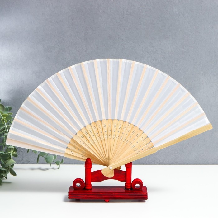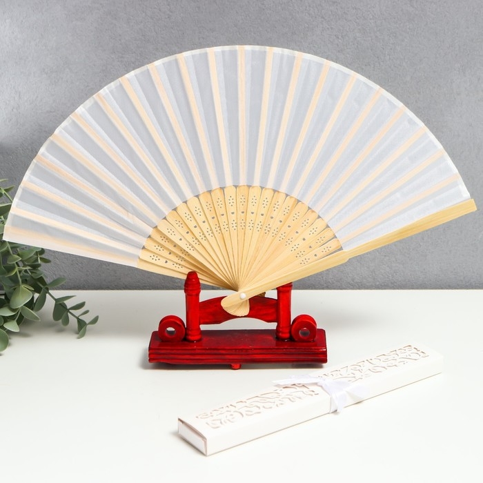 Веер бамбук, текстиль h=21 см "Моноцвет" в коробке, белый