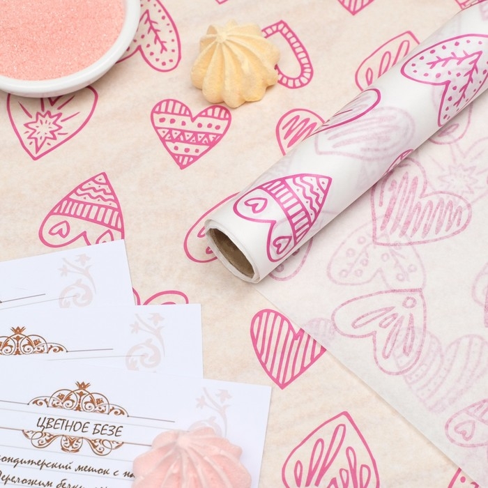 Бумага силиконизированная «Сердца пурпурные», для выпечки, 0,38 х 5 м