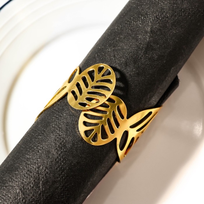 Кольцо для салфетки «Лист», 4,5×4,5×5 см, цвет золотой