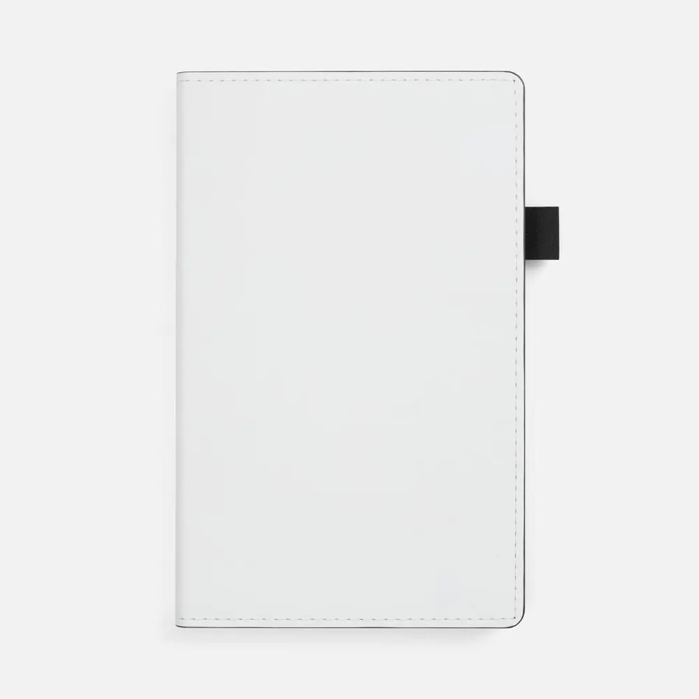 Гибкая обложка, материал обложки — Soft Touch, белый BB и Latte, черный АА; материал петли для ручки — Nice Touch, черный АА. Срез обложки окрашен в черный цвет.