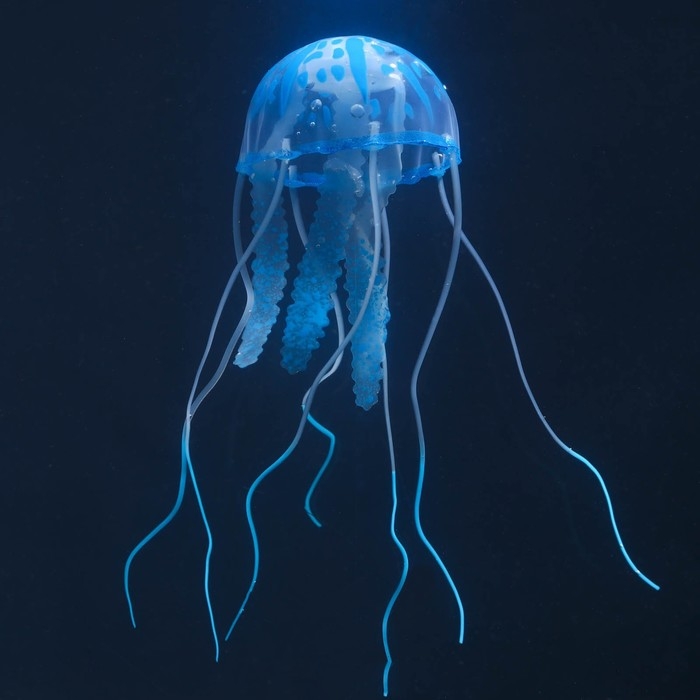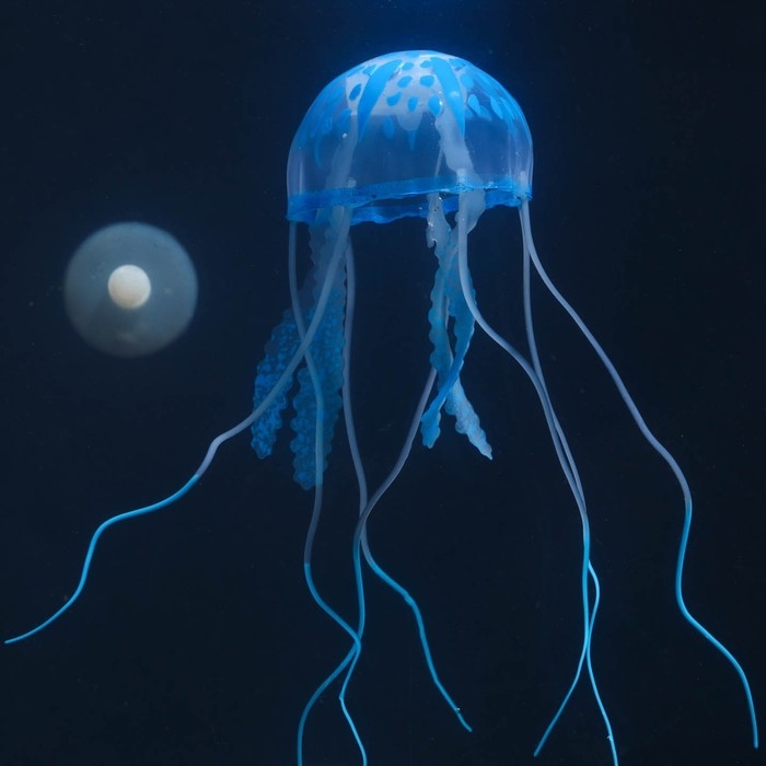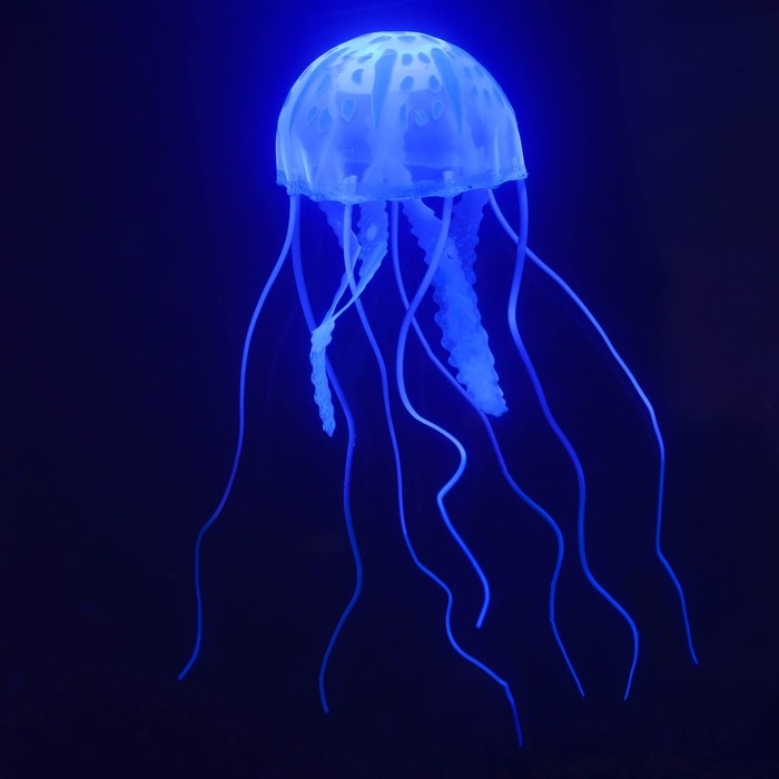 Декор для аквариума "Медуза" силиконовая, флуоресцентная, 5 х 5 х 15 см, синяя
