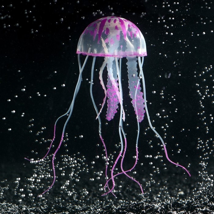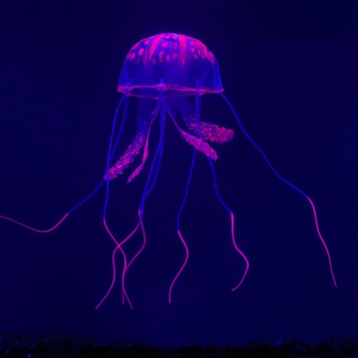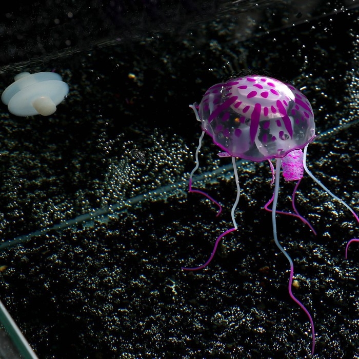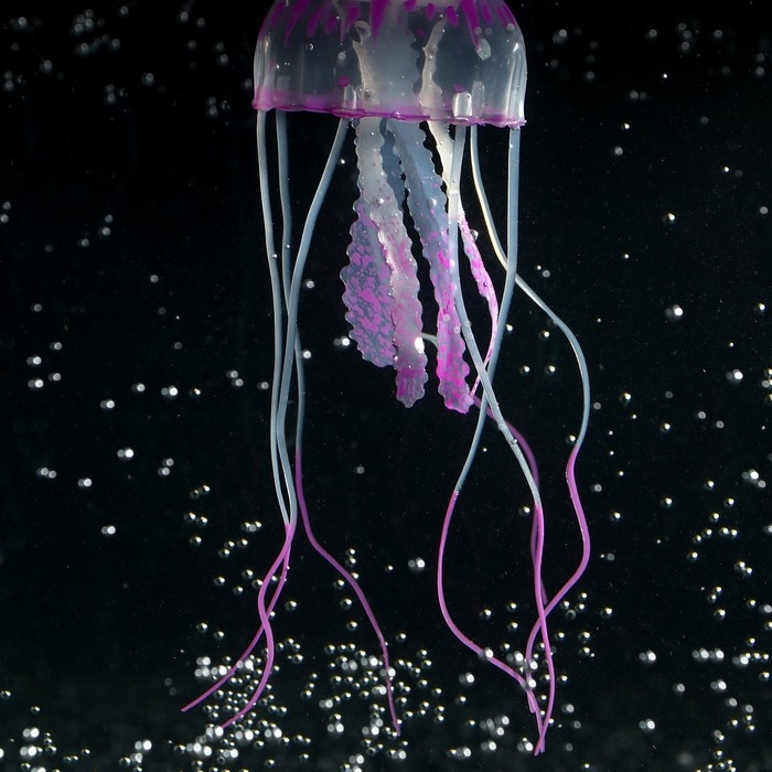 Декор для аквариума "Медуза" силиконовая, флуоресцентная, 5 х 5 х 15 см, фиолетовая