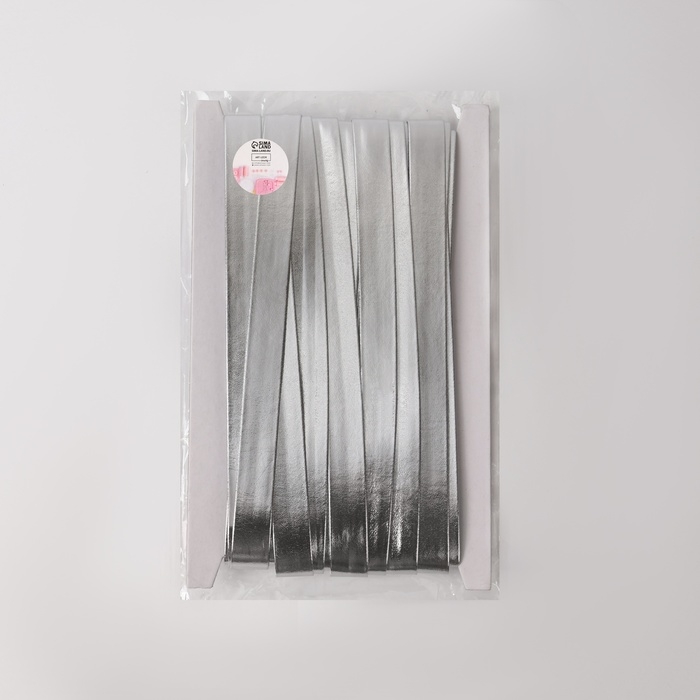 Косая бейка, кожаная, 15 мм × 10 ± 1 м, цвет серебряный