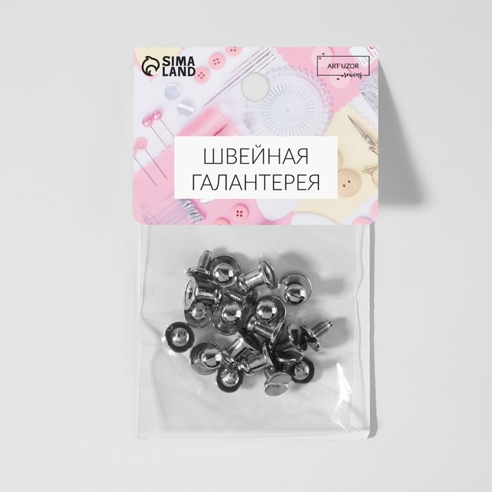 В наборе 10 штук серебряного цвета. Диаметр шляпки 5 мм; диаметр основания 8 мм; высота 9 мм.