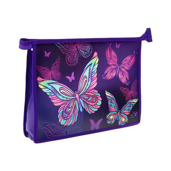 Папка для тетрадей А4, 325 х 230 х 55 мм, молния сверху, пластиковая, ПМ-А4-29 Calligrata "Бабочки"