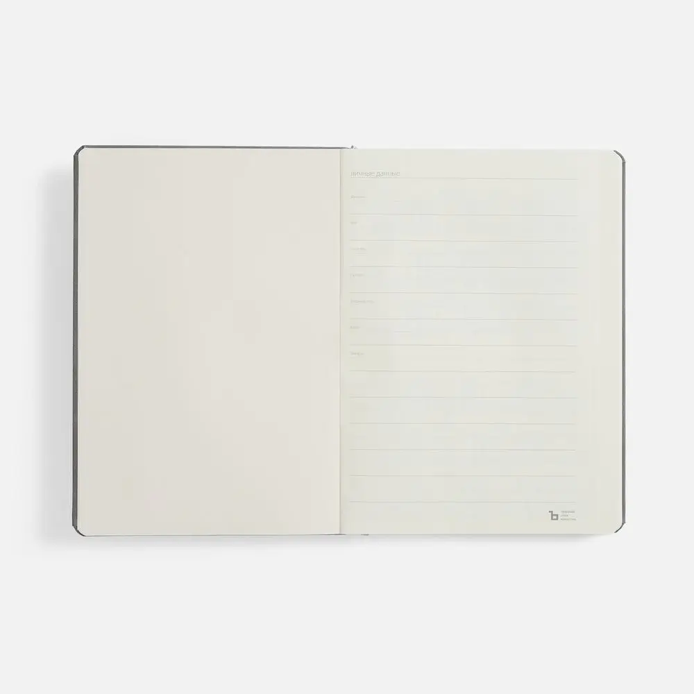 Ежедневник с твердой обложкой, выполнен из материала Nubuck Touch, серый СС, дополнен ляссе темно-серого цвета.