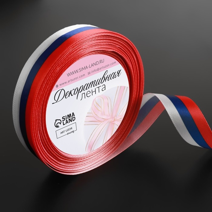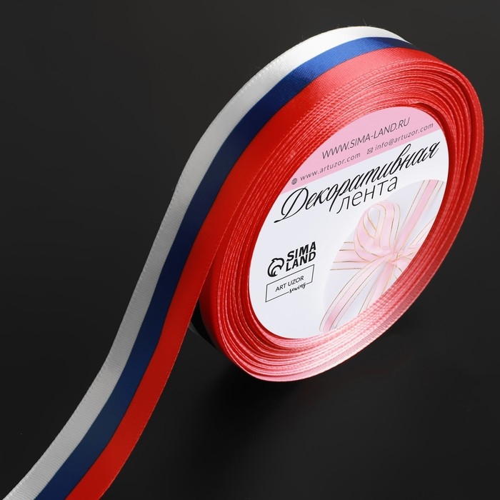 Лента атласная «Триколор», односторонняя, 25 мм, 18 ± 1 м