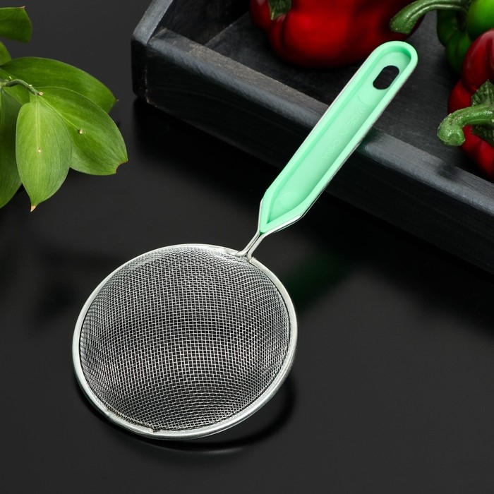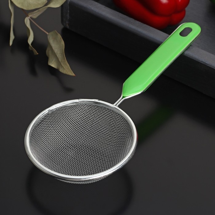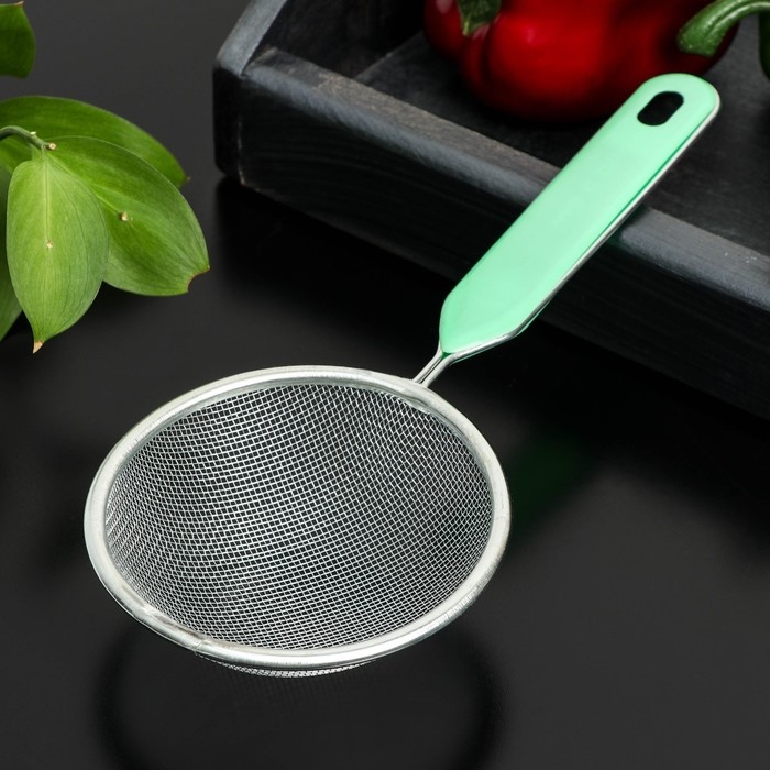 Сито для просеивания с ручкой Доляна «Хозяюшка», d=10 см, цвет зелёный