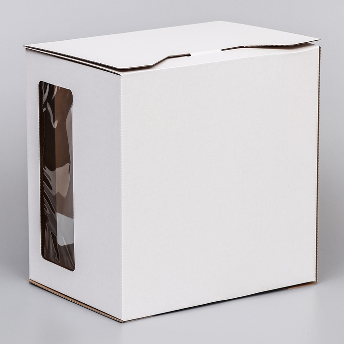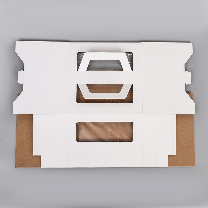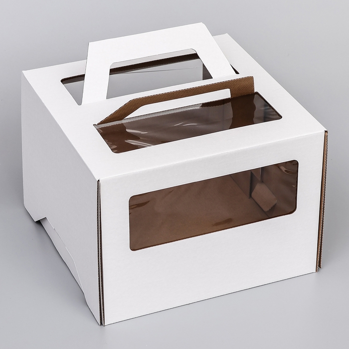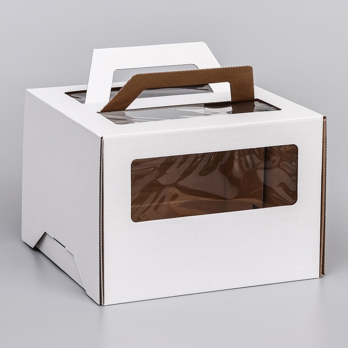 Коробка под торт 2 окна, с ручками, белая, 28 х 28 х 20 см