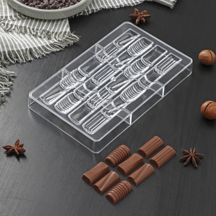 Форма для конфет и шоколада «Фигурный батончик», 20×12×2,5 см, 20 ячеек 3,3×1,6×0,8 см, цвет прозрачный