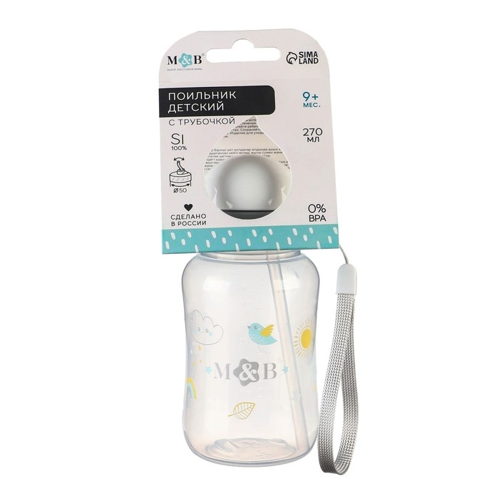 Поильник - непроливайка детский с силиконовой трубочкой «M&B», 270 мл., цвет серый