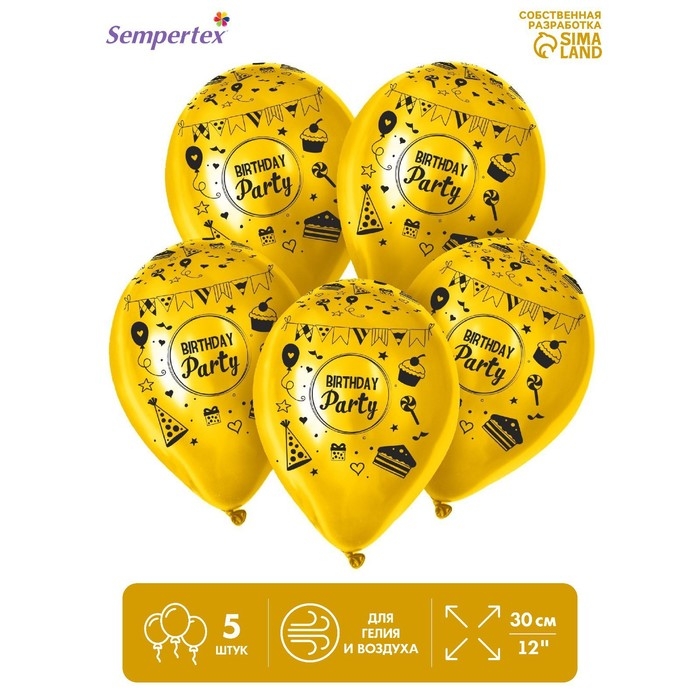Воздушный шар латексный 12" «Весёлая вечеринка», пастель, цвет жёлтый, 5 шт.