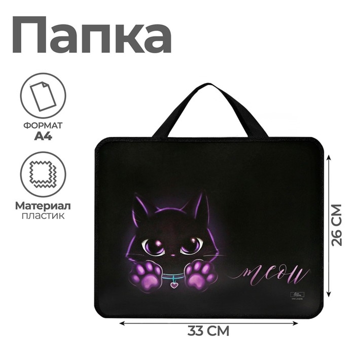 Папка с ручками А4, 330 х 260 х 75 мм, пластиковая, ручки-тесьма, Calligrata "Котик"