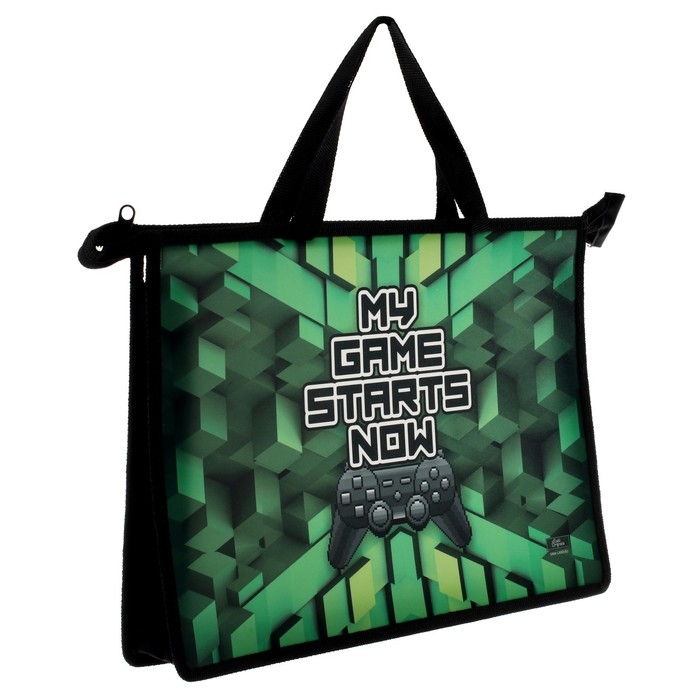 Папка с ручками А4, 335 х 235 х 55 мм, пластиковая, ручки-тесьма, Calligrata "Пиксели"