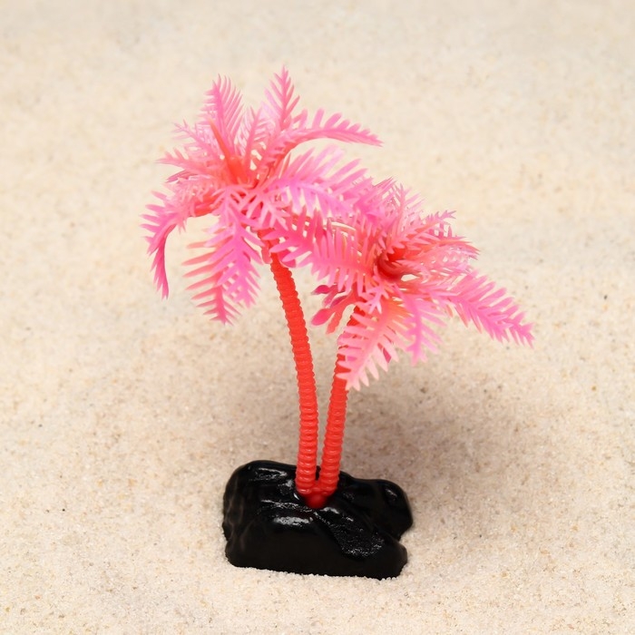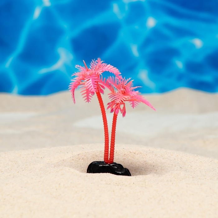 Растение искусственное аквариумное "Пальма", светящееся, 10 см, красное