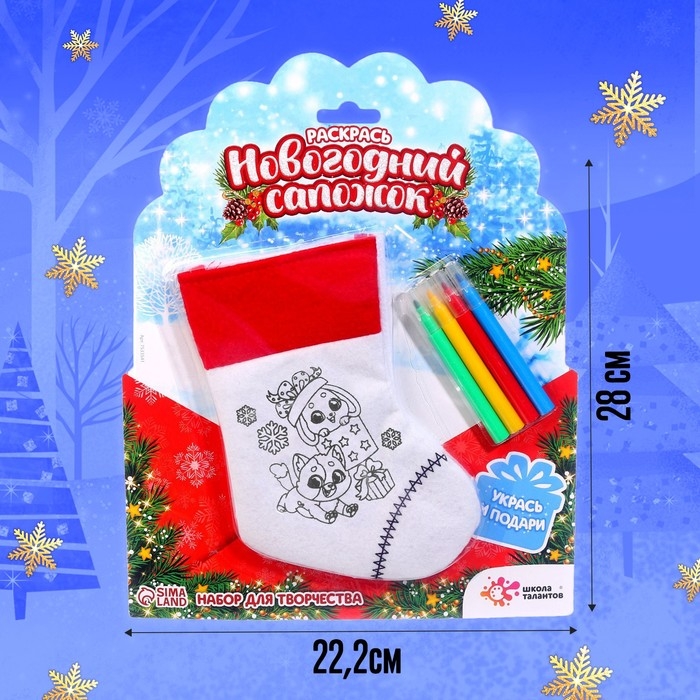 Набор для творчества «Раскрась новогодний сапожок», с фломастерами, 3+