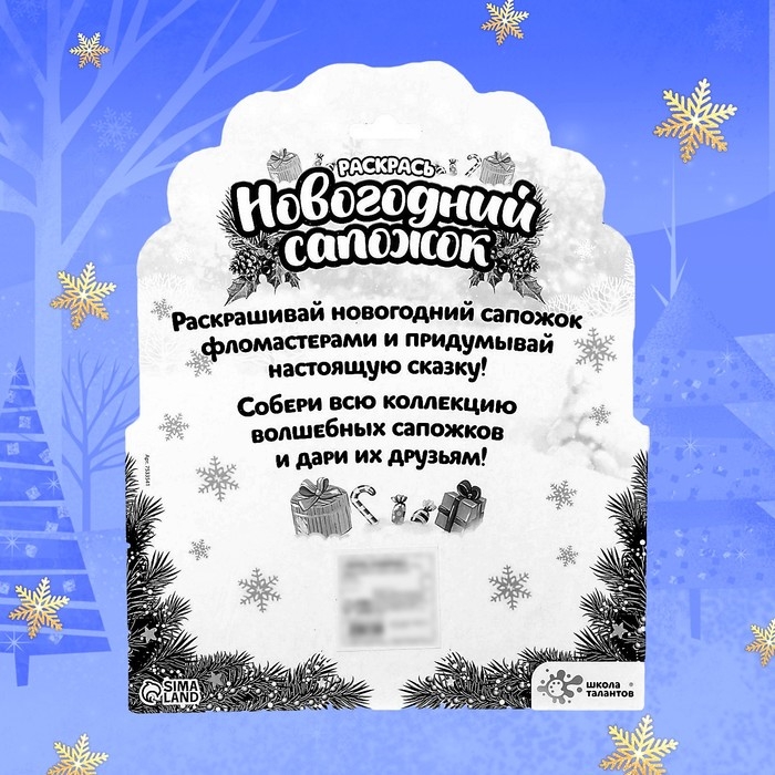 - Творческий набор «Раскрась новогодний сапожок» способствует развитию креативности и координации у детей.