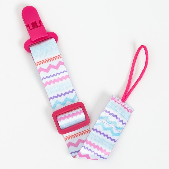 Изделие фиксируется на одежде ребёнка. На конце цепочки есть карабин, который зацепляется за кольцо пустышки. Надёжное крепление убережёт вещь от падения на пол, если малютка случайно выронит её изо рта.