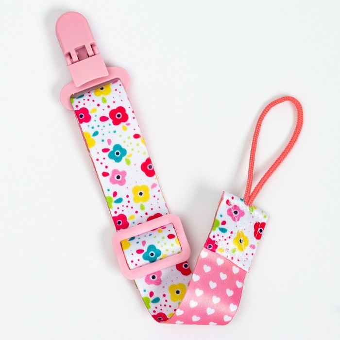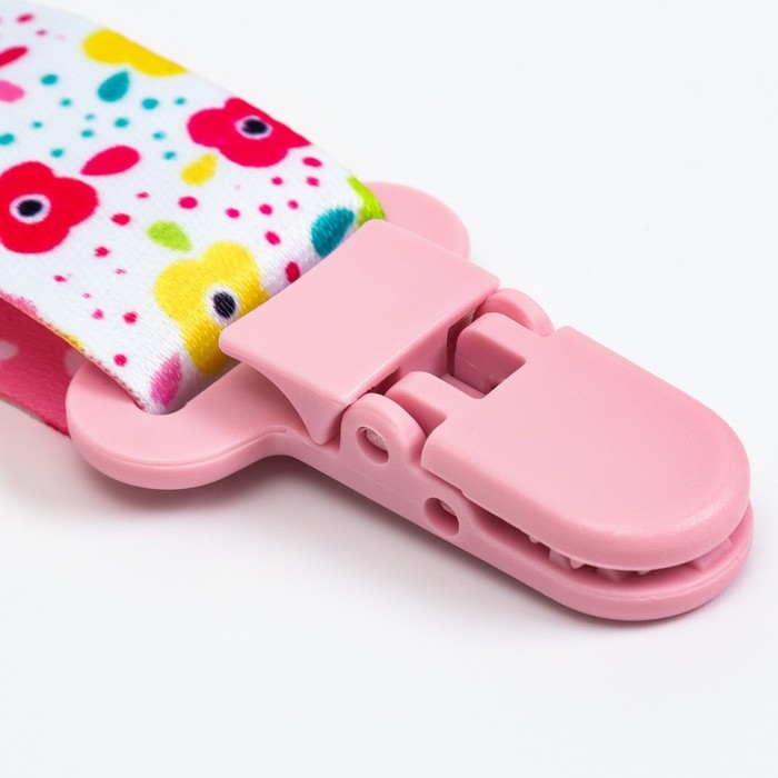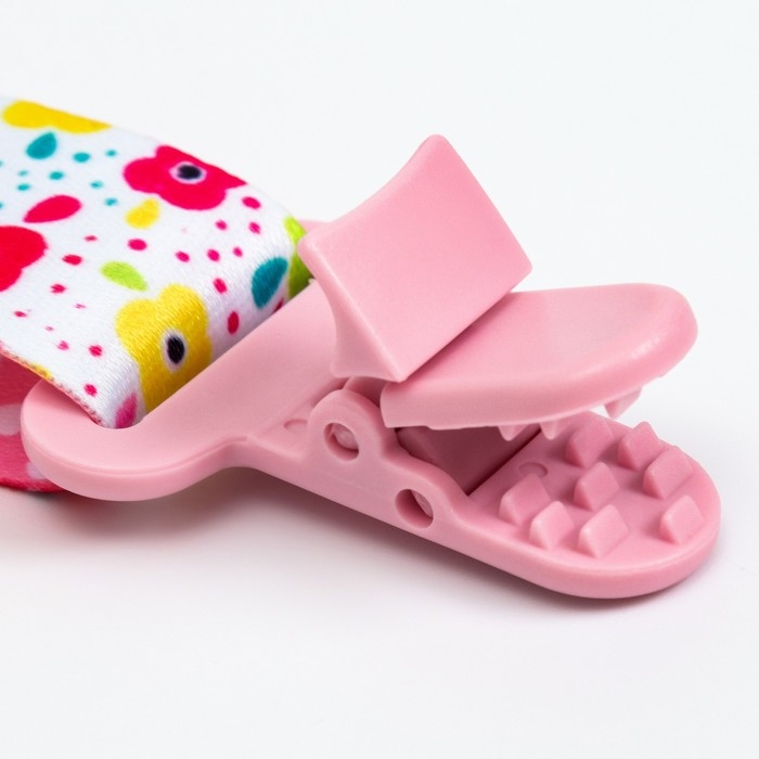 Изделие фиксируется на одежде ребёнка. На конце цепочки есть карабин, который зацепляется за кольцо пустышки. Надёжное крепление убережёт вещь от падения на пол, если малютка случайно выронит её изо рта.