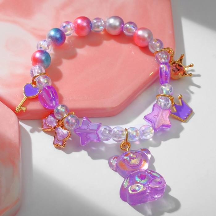 Браслет детский «Выбражулька» мишка, звёзды, цвет цветной в золоте