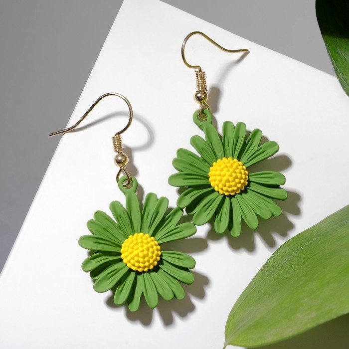 Серьги металл «Яркость» ромашки, цвет жёлто-зелёный