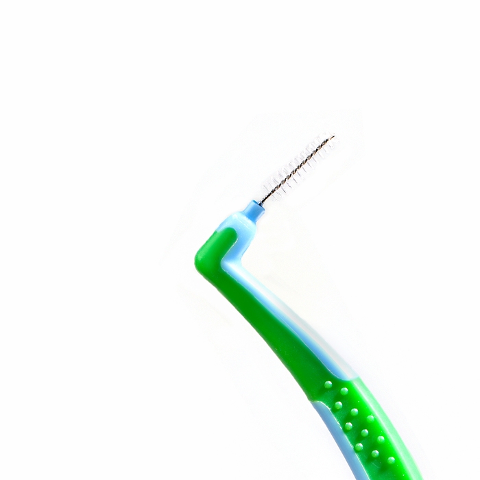 - Гибкий стержень позволяет качественно и бережно очистить межзубное пространство и брекеты;
