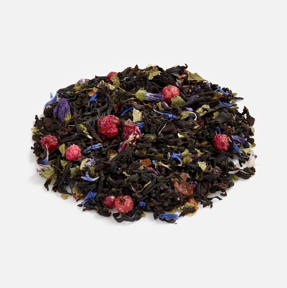 - Чай черный «Подмосковные вечера» Состав: чай черный индийский листовой OPА Assam , ягоды красной смородины сублимированные, листья смородины, лепестки василька, цветы мальвы, кусочки шиповника, ароматизатор «черная смородина»