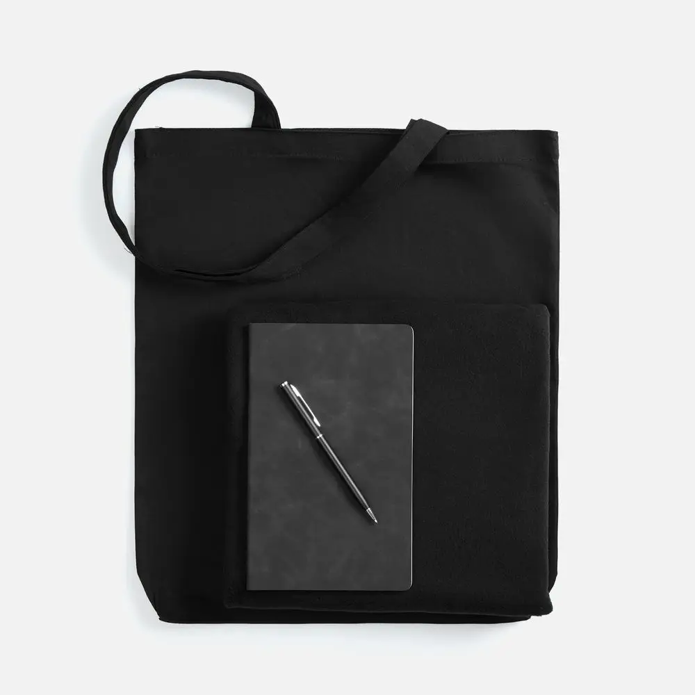 Набор с основной канцелярией и пледом — классика жанра в уютном исполнении. С компактным блокнотом под рукой будет удобно делать заметки в любое время, а легкий флисовый плед позволит выразить самые теплые пожелания.