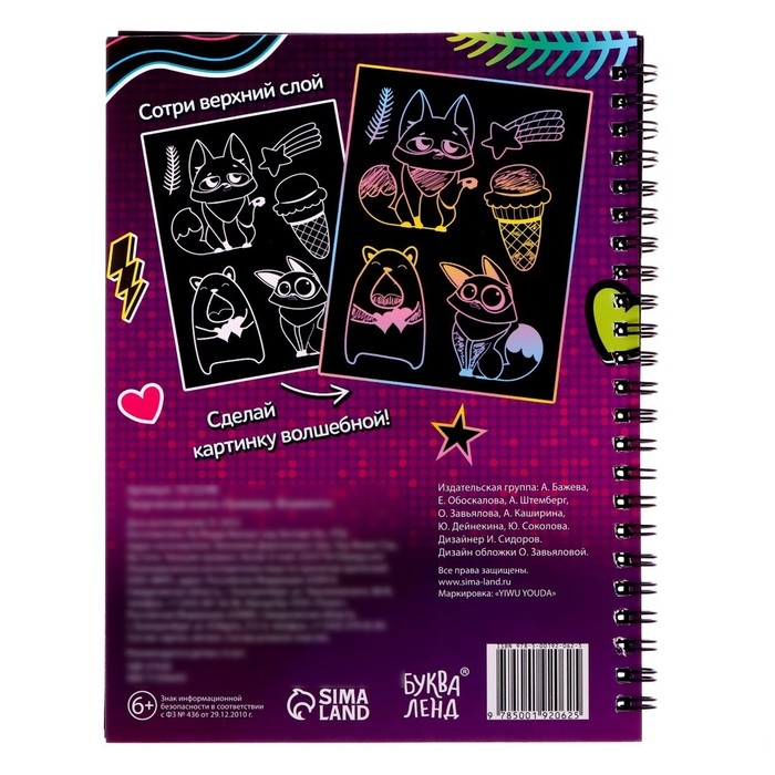 Чтобы сделать гравюру, нужно просто стирать верхний слой с помощью пластикового штихеля, который входит в набор. В книге вы найдёте 10 гравюр и интересные задания «найди и покажи».
