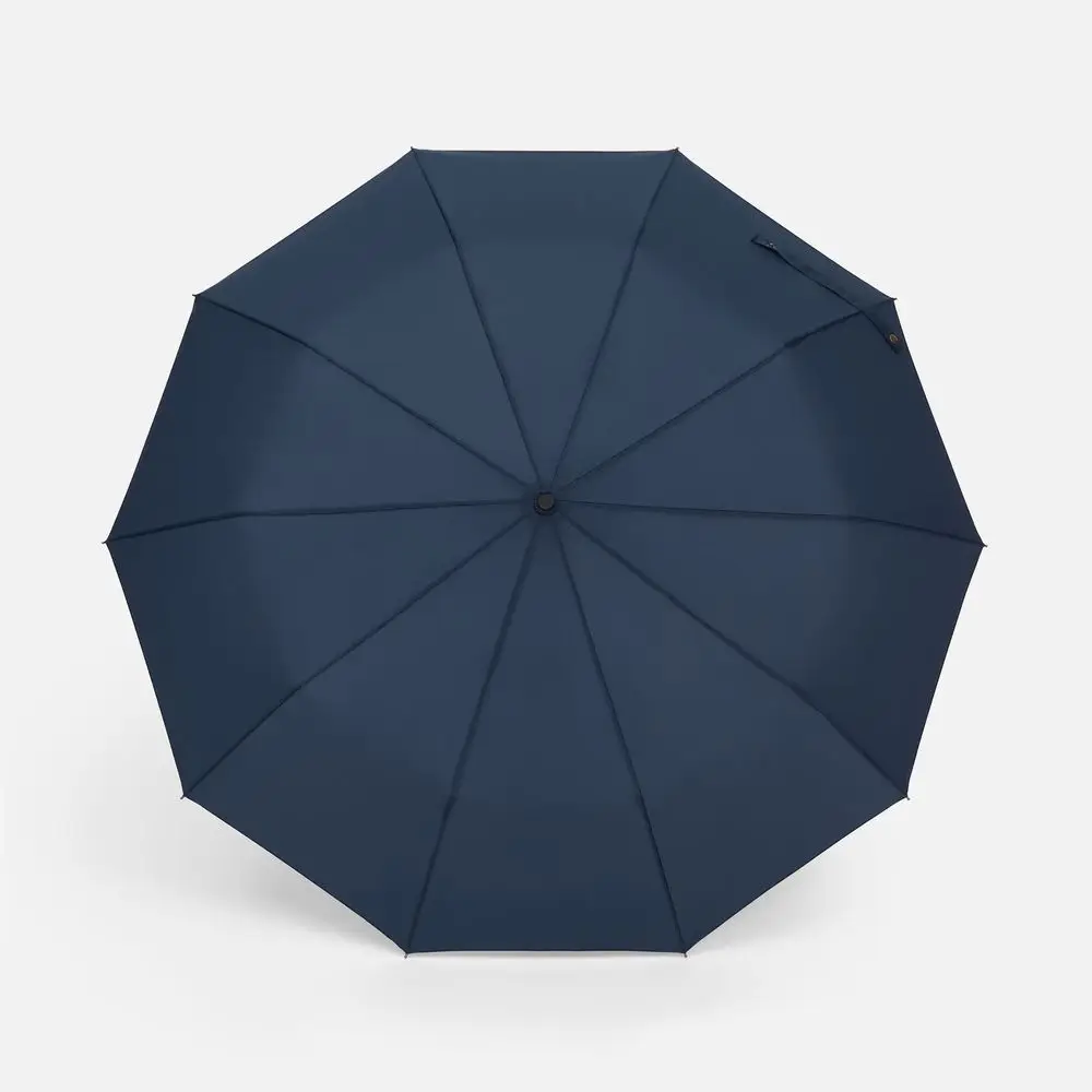 Складной зонт с большим куполом, системой антишторм и эргономичной ручкой из дерева.