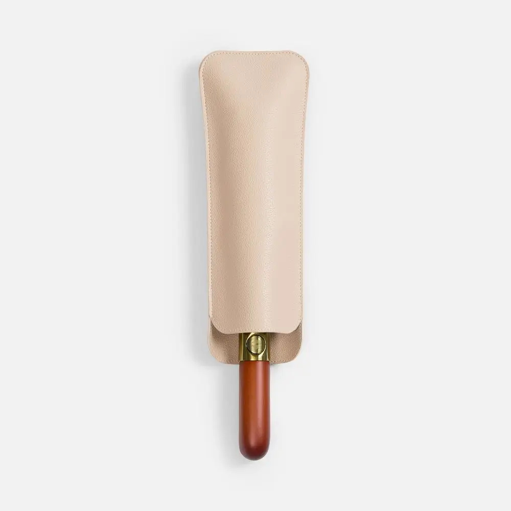 - Деревянная прямая ручка с кнопкой открытия и закрытия зонта