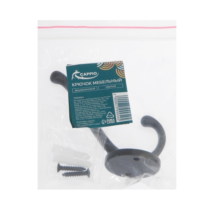 Крючок мебельный CAPPIO LINE, двухрожковый, черный