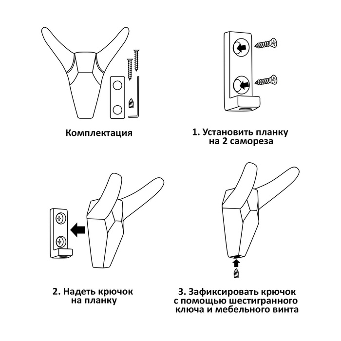 Крючок мебельный CAPPIO HORN, двухрожковый, черный