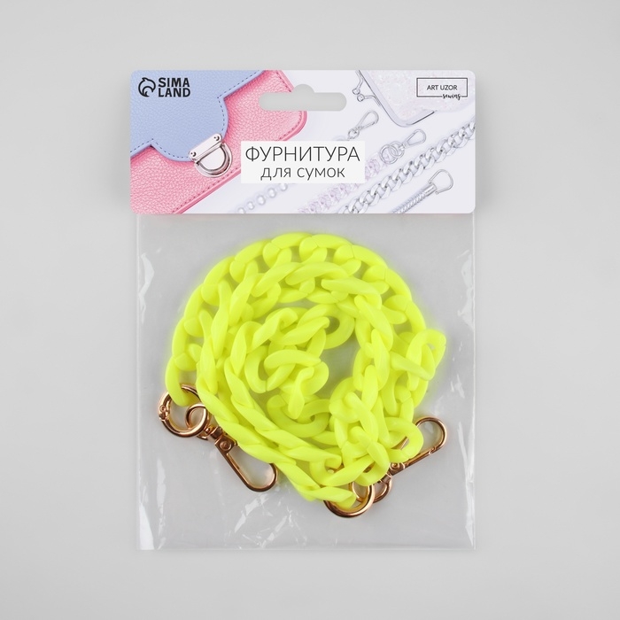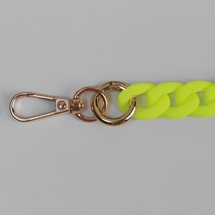 Цепочка для сумки, пластиковая, с карабинами, 23 × 17 мм, 68 см, цвет неоновый жёлтый/золотой