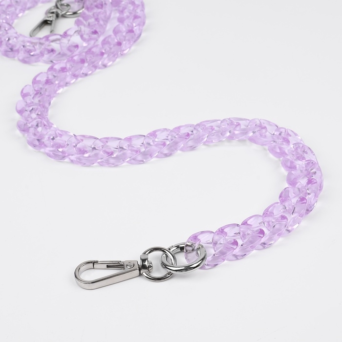Цепочка для сумки, пластиковая, с карабинами, 23 × 17 мм, 68 см, цвет сиреневый/серебряный