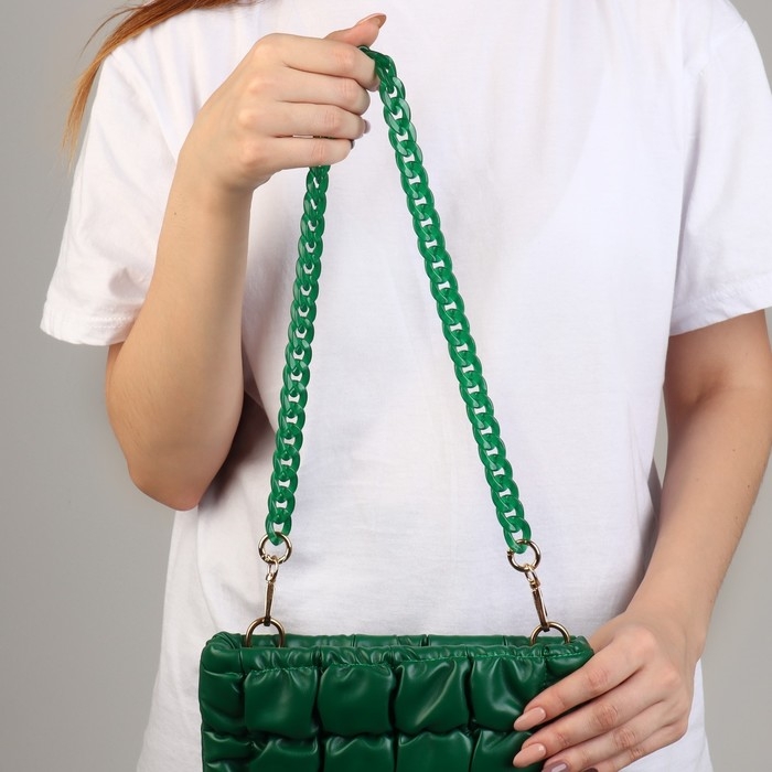 Цепочка для сумки, пластиковая, с карабинами, 23 × 17 мм, 68 см, цвет малахитовый/золотой