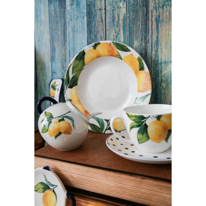 Сахарница с ложкой Доляна «Лимон», 200 мл, цвет белый