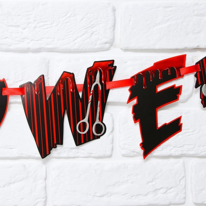 Гирлянда на ленте на Хэллоуин «Happy Halloween», кровавая тыква, длина 250 см.