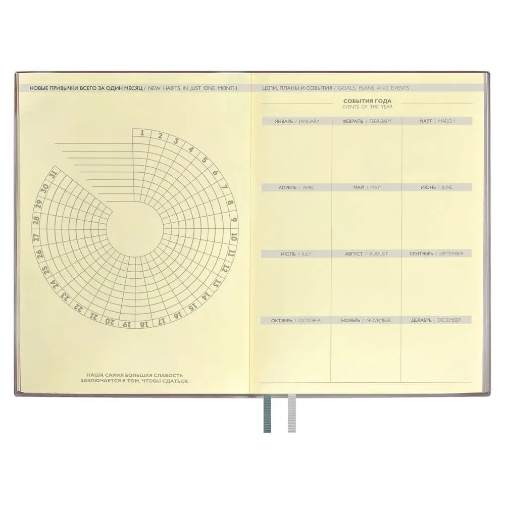 Ежедневник с гибкой обложкой и закладкой из искусственной кожи, дополнен капталом и двойным ляссе.