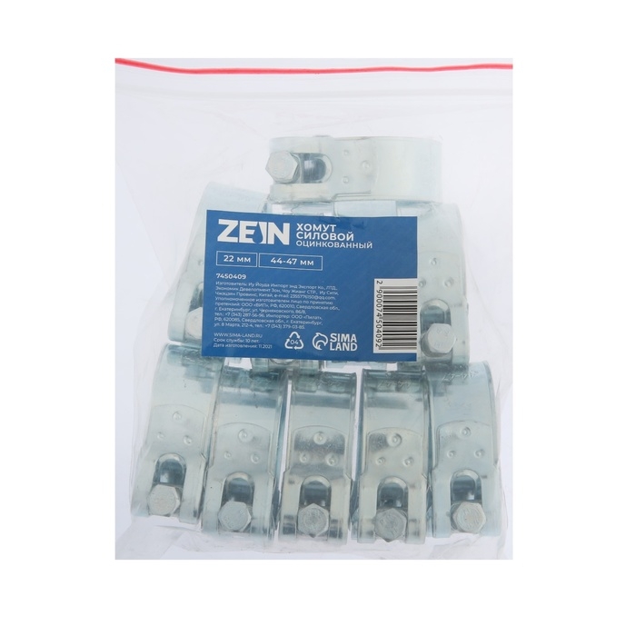 Хомут силовой ZEIN engr, диаметр 44-47 мм, ширина 22 мм, оцинкованный